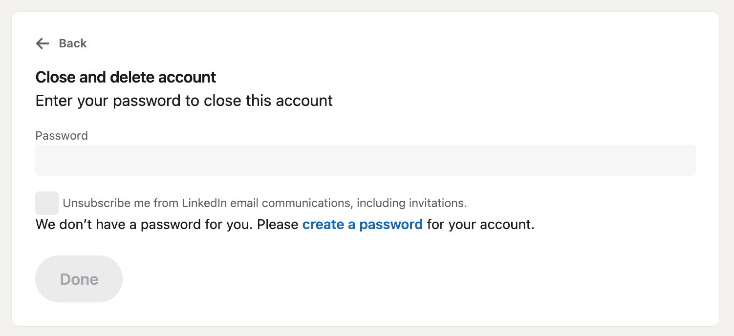 - Go back into LinkedIn, navigate again to Settings & Privacy -> Close & Delete Account